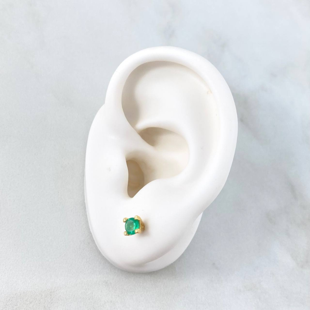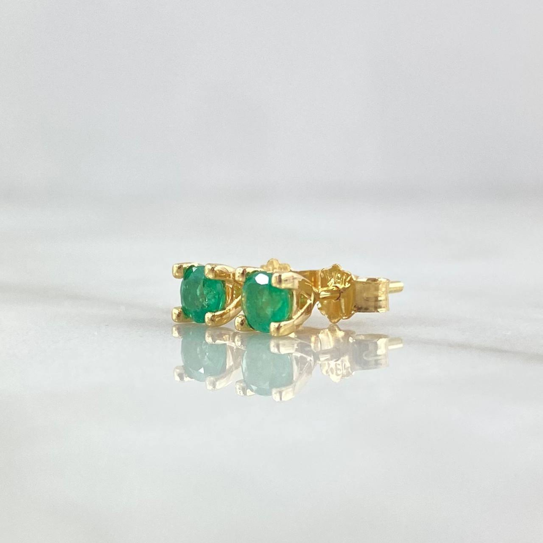 Hermosos topitos en oro de 18k, con una fina esmeralda de 0.60 pts, diseño elegante y delicado ideal para uso diario o eventos especiales. Certificados y garantizados por Emporia.